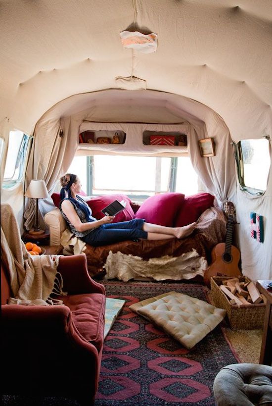 Por suerte la idea de que son un espacio incómodo y poco versátil pasó a la historia. Se pueden amueblar y decorar como si se tratase de una vivienda al uso, haciendo de ellas espacios confortables, originales y personales. Muebles de madera, colores cálidos, suelos de tarima, papeles pintados, alfombras, cojines, cuadros… todo vale. Si te gusta para tu casa ¿por qué no utilizarlo para tu caravana?